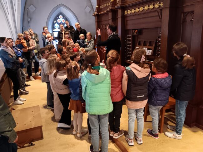 Die Buben und Mädchen der 2. Klasse durften die Orgel aus der Nähe kennenlernen.