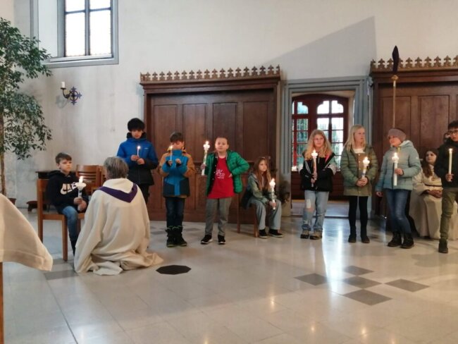 Am Sonntag im Versöhnungsgottesdienst hat Kaplan Stephan Stadler jedem einzelnen Kind den Zuspruch gegeben, dass Gott immer bei ihnen ist und ihnen zuhört.