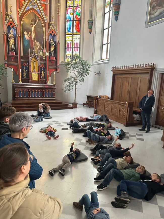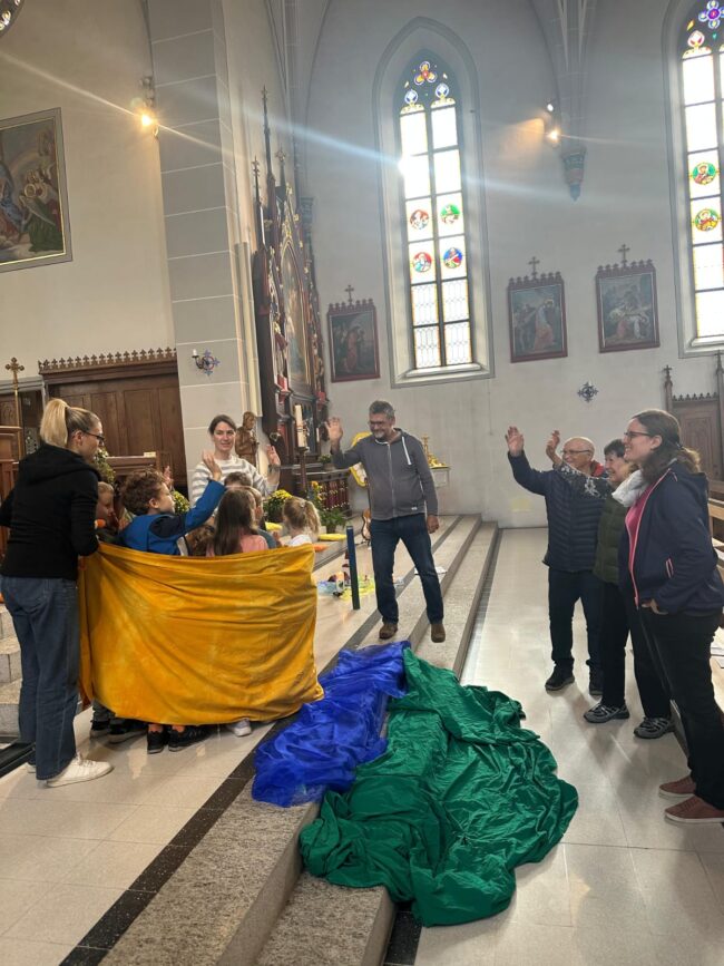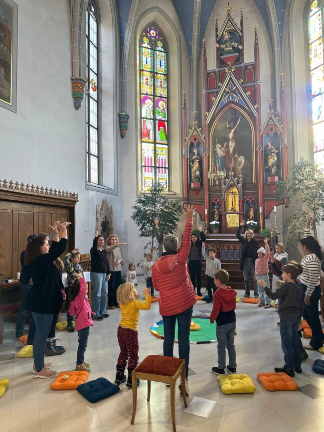 Am Dienstag 21. Oktober trafen sich Mädchen, Buben, Mütter und Grosseltern zur Chinderfiir in der Kirche. Sie hörten die Geschichte vom Seesturm und konnten diesen gleich nacherleben. Dazu wurde gesungen und gebetet. Am Schluss durften alle ein Papierschiff falten, und weil Jesus immer dabei ist, mit einem Glitzerstein bekleben.