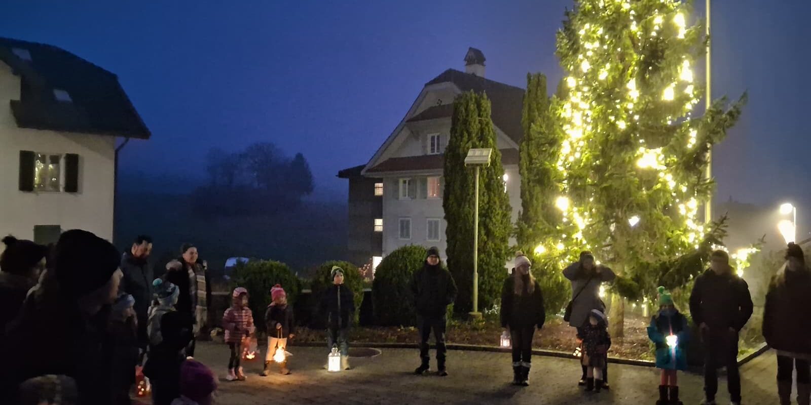 Die Laternlifiir am Sonntagabend, 14. Dezember 2025 zog viele Familien in ihren Bann. Antoinette Longobardi Beeler erzählte der erwartungsfrohen Zuhörerschaft die Geschichte vom etwas lädierten Guezlistern, der nach und nach seine Qualitäten entdeckte. Dann lud sie zum Laternenumzug um die Pfarrkirche ein. Nach einer Segensbitte gab es ein Mailänderli zur Stärkung, ehe alle mit ihren leuchtenden Laternen den Heimweg antraten.