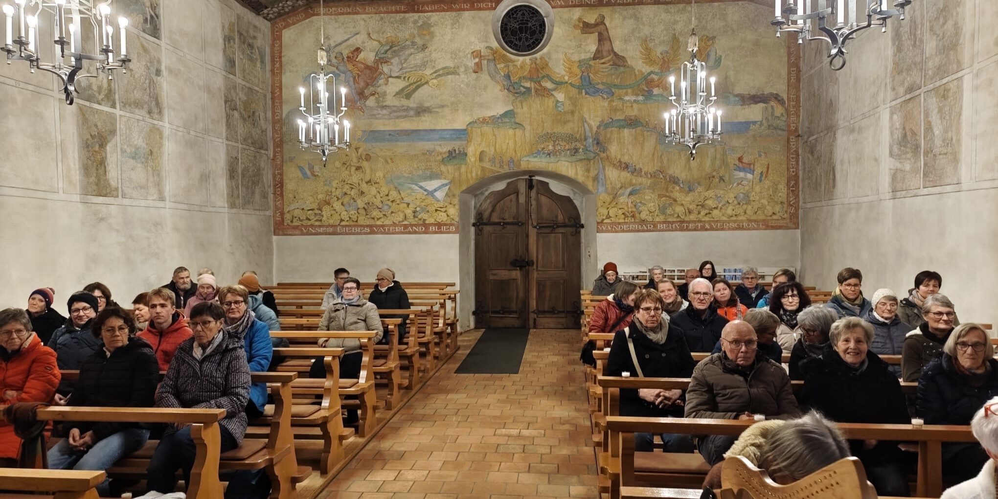 Ab 17.00 Uhr sammelte ein Car am Dienstag, 18. November 2025 in allen fünf Pfarreien des Pastoralraumes die Pilgernden ein, um zusammen ins Flühli Ranft zu fahren. Priester Josef Mahnig gestaltete mit Astrid Elsener von der FG Ennetmoos das Friedensgebet. Alle Pilgernden wurden durchdrungen von der Stille und auch von den Worten in der Ranftkapelle. Im Rahmen der November- Friedensgebete wurde im Geist von Bruder Klaus und Dorothee um Frieden gebeten – für unsere Welt, unsere Gemeinschaft und unser eigenes Herz. Die Feier wurde musikalisch gestaltet vom Quartett «musica serenata» aus Nottwil: Die Flöten, Harfe und Panflöte erwärmten die Ohren und das Herz. Danach gab es Suppe und Brot an der Wärme, bevor es wieder auf die Heimreise ging.