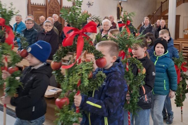 Unter großer Beteiligung startete Nottwil mit dem Familiengottesdienst am Palmsonntag in die Karwoche. Erstkommunikanten, die JuBlaNo und weitere Gläubige brachten Palmbäume und Sträuße zur Segnung mit, die mit schlichten Gesängen durch den Kirchenchor begleitet wurde. Anschliessend klang der Festtag in einem rappelvollen Chilekafi aus.
