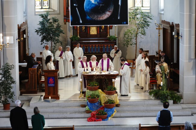 Die Feier zum Hohen Donnerstag begann mit der Fusswaschung und einem Brotteilen im Vikariatssaal. Dafür hatten die Erstkommunikanten extra gebacken. Dann folgte die Feier der letzten Abendmahles in der Kirche.