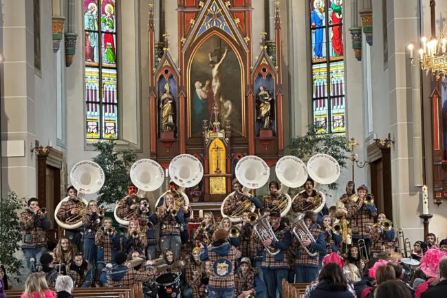 DetailsDer Fasnachtssonntag begann mit Rhythmen und einem fulminanten Einzug der Flachlandruugger in die Kirche.