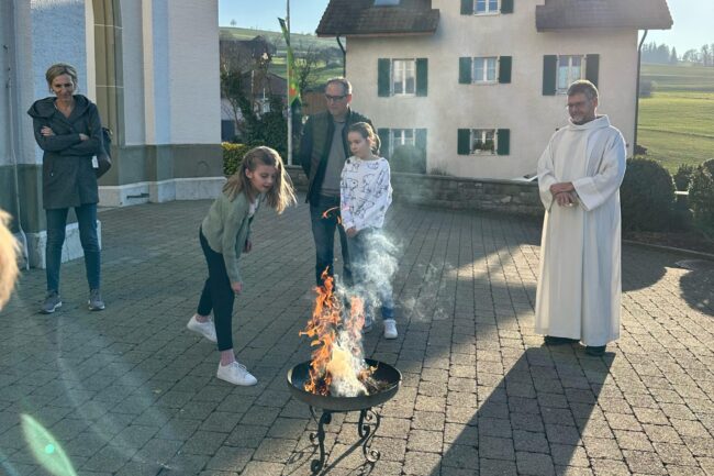 DetailsZum Beginn der Fastenzeit trafen sich einige Familien zur Feier des Aschermittwochs in der Kirche.